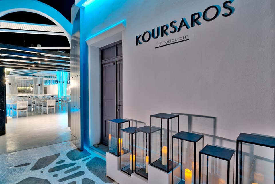 In a wonderful setting reminiscent of a Corsair’s ship, in the heart of Mykonos and only a breath away from Little Venice is Koursaros Fish Restaurant. Situated in a beautiful spacious garden Koursaros promises an unforgettable dining experience with many authentic flavors of Greek and Mediterranean cuisine, with its main focus being on fresh fish and seafood. Having operated for over 20 years in the northern suburbs of Athens, Koursaros guarantees a quality seafood experience. In combination with Koursaros’ Mykonos team they have created a menu capable of satisfying the most demanding palates and have perfected gastronomic simplicity and Greek hospitality.