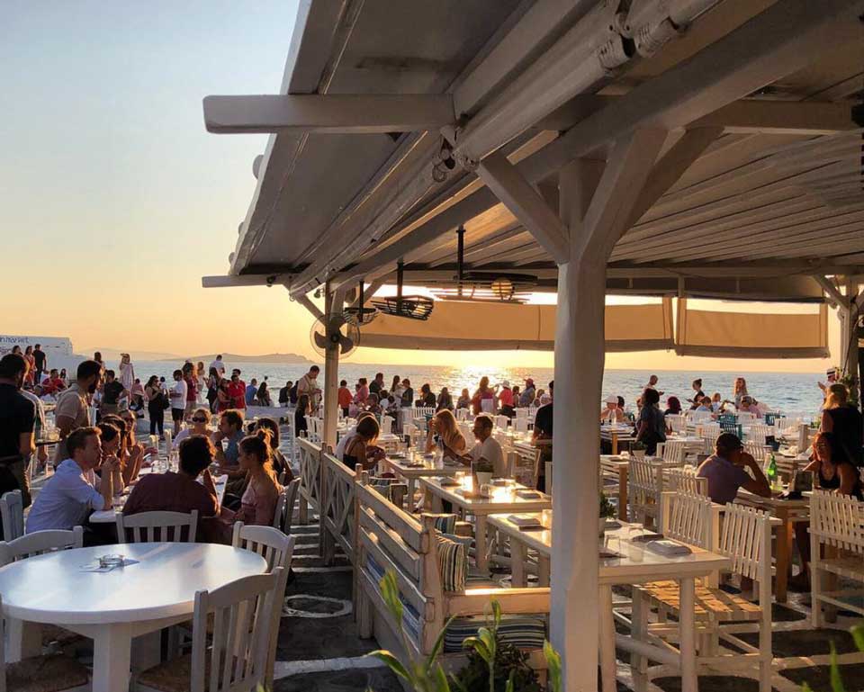 Nice n easy’ Mykonos is dedicated in serving organic, locally grown food that is healthy and environmentally conscious. With an exceptional location, just between “Little Venice” and “Windmills” you may experience a one of a kind sunset view while enjoying your drink or food on the seaside. They also serve on tables situated just on the beach. All dishes are designed and cooked by the renown awarded chef Christos Athanasiades. They are famous for their friendly approach and their fantastic organic food at reasonable prices. Best place to enjoy an excellent dinner and follow up with great cocktails in the Little Venice area bars as Scarpa, Caprice and many other.