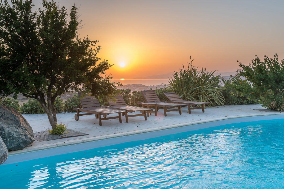 “Starlight Villa” is located on a hillside overlooking Mykonos town, in a secure residence complex. It offers impressive view of the Aegean Sea and the surrounding islands of Delos, Tinos and Syros, offering spectacular sunsets!