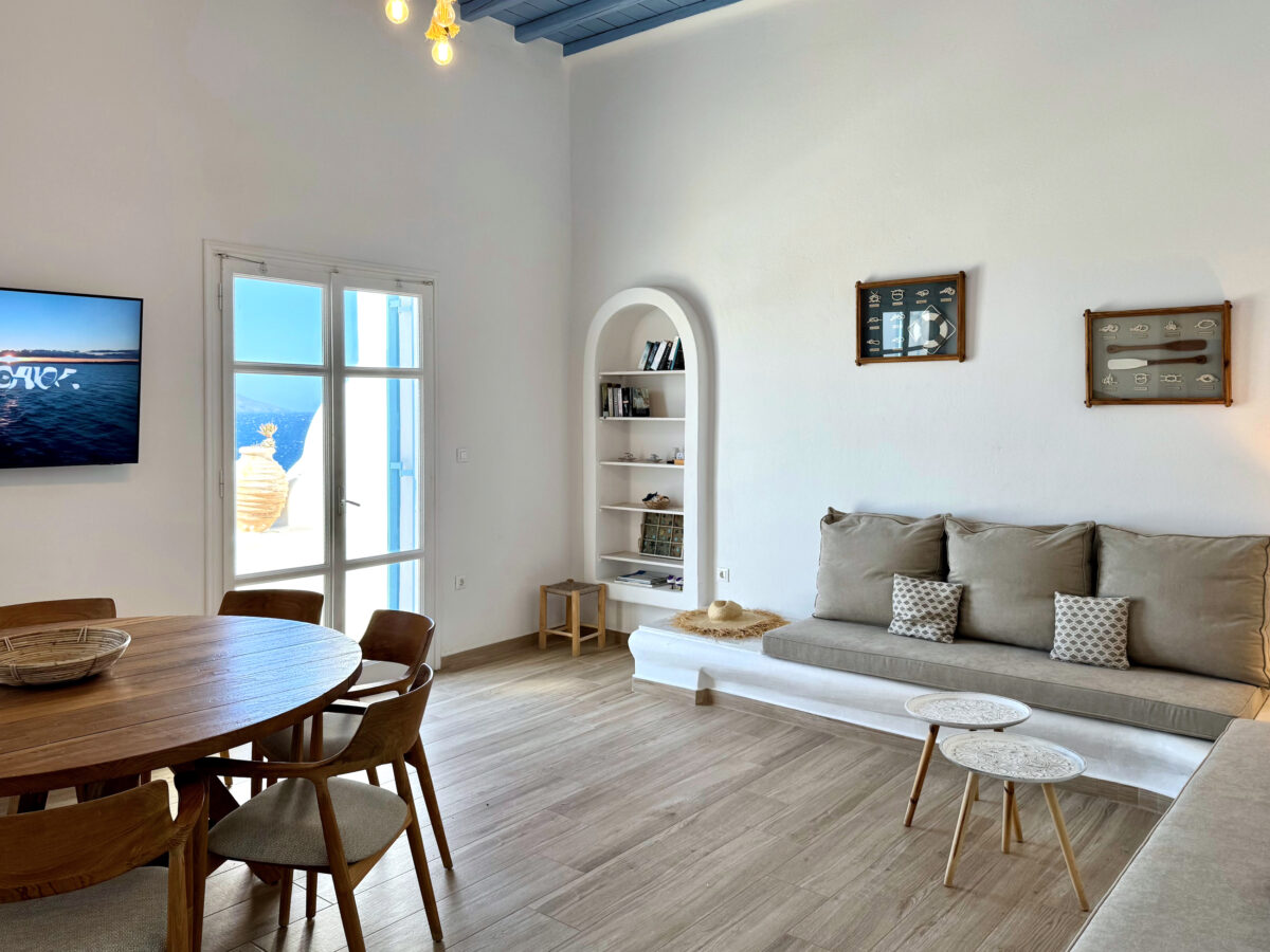 The villa is located on a hillside overlooking Aegean Sea offering impressive view of the Aegean sea and the surrounding islands of Rineia and Tinos, offering spectacular Sunsets.