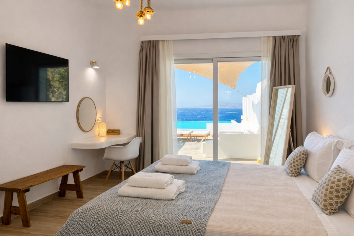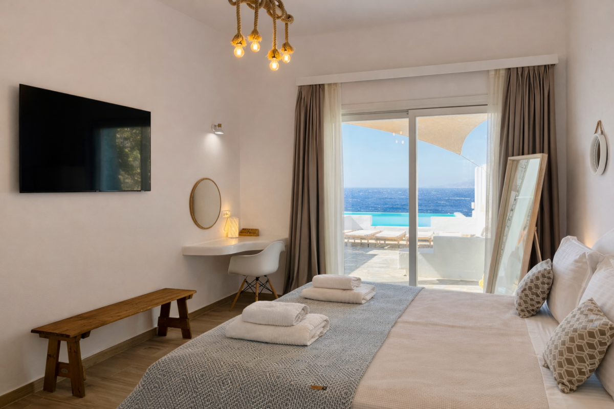 of our villa, provides the exceptional advantage to reach Ornos beach and Mykonos town in less than 10 minutes.